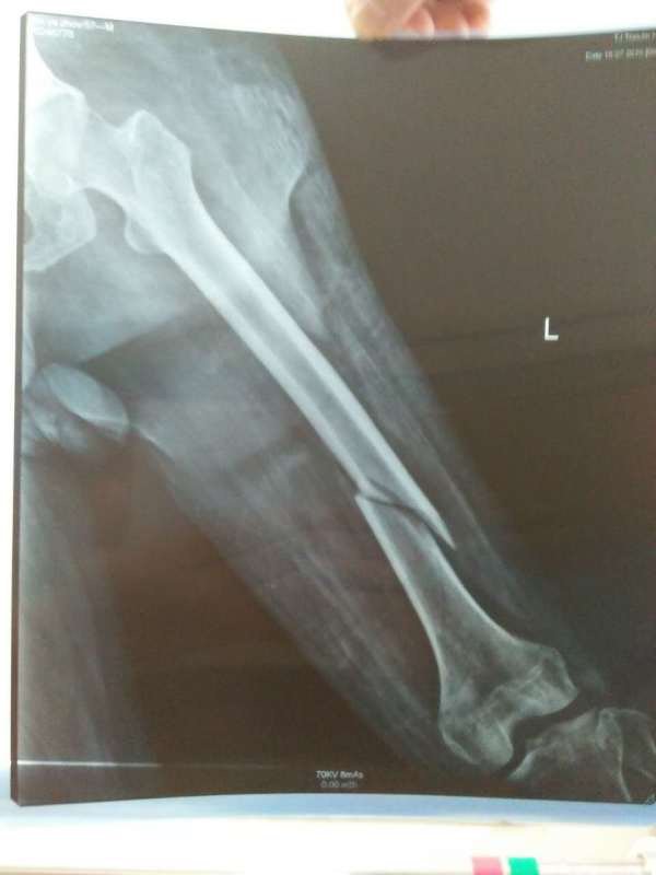 父亲大腿骨折~因为左侧腿有小儿麻痹,无法做手术~一直做的牵引,现出院在家做牵引~