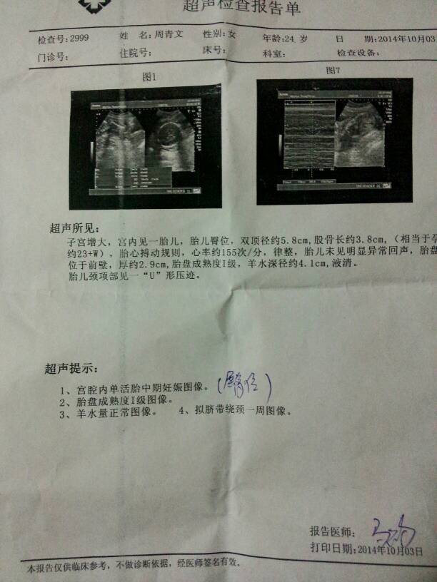您好 这个单子很棒。羊水正常。中孕,胎位是臀位,期待绕颈一周。恭喜