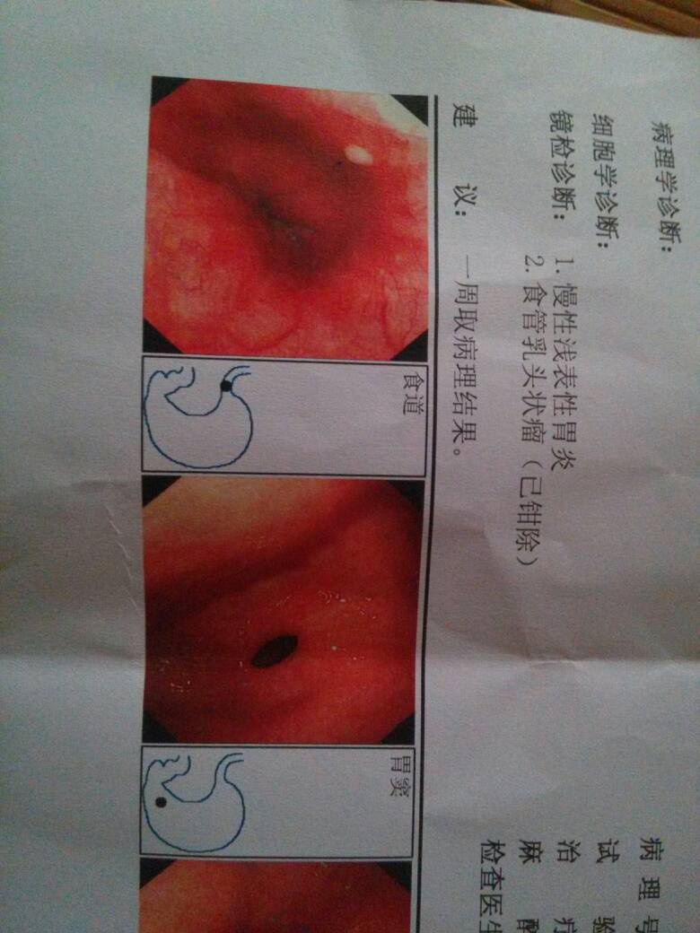 刚刚我做了胃镜检查出食管乳头状瘤!己钳除,我现在肚子好饿,我可以吃什么东西?钳了还会 刚刚我做了胃镜检查出食管乳头状瘤! 己钳除,我现在肚子好饿,我可以吃什么东西? 钳了还会复发吗? 点击展开 匿名用户 2015-07-15 16:48 满意回答 你好,一般需要24小时后才能进食 babyɿɹ1 2015-07-15 16:55 宝宝知道提示您:回答为网友贡献,仅供参考。 相关问题 做胃镜检查出食管乳头状瘤(良性)需要住院手术吗? 胃镜检查:浅表性胃炎,幽门螺旋杆菌阳性,食管新生物 病理检查显示:食道粘膜慢性炎伴鳞状上皮乳头状增 我现在孕十周,马上就要十一周了,孕吐的厉害,昏天黑地的,食管和牙齿都烧的难受,我可以喝苏打水吗?