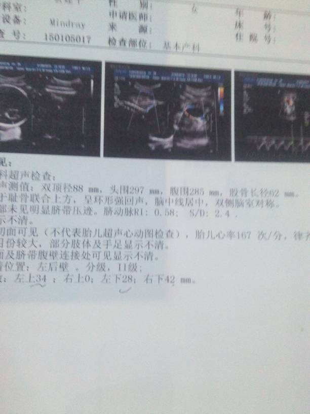 双顶经88mm 腹围285mm 股骨长径62mm胎儿大概多重? 双顶经88mm 腹围285mm 股骨长径62mm胎儿大概多重? 点击展开 150*****218_xJqc 2016-04-30 08:13 相关问题 双顶径88mm,股骨长75mm,肱骨长62mm,谁会看有多重? 双顶经88mm 腹围285mm 股骨长径62mm胎儿大概多重? 双顶径88mm,股骨长62mm,腹围316mm我的孩子有多重,请大家来看