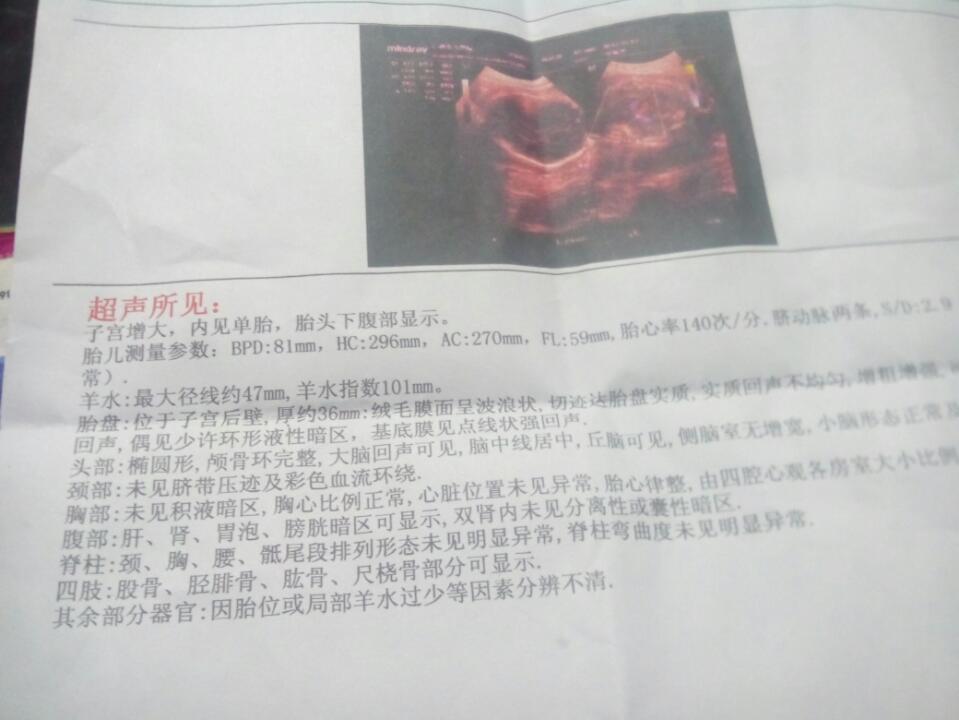 BPD:81mm,HC:296mm,AC:270mm,FL:59mm,胎心率140次/分 脐动脉两 BPD:81mm,HC:296mm,AC:270mm,FL:59mm,胎心率140次/分.脐动脉两条,S/D:2.9 羊水:最大径线约47mm,羊水指数101mm 这样胎儿有多重? 点击展开 旧情别恋 2016-05-15 23:34 为您推荐: 其他回答 問問醫生的吧 朵朵^_- 2016-05-15 23:55 不清楚。。。 糜酒长安 2016-05-15 23:54 问医生!!! 每天好 2016-05-15 23:44 好像四斤多点 (๑˙❥˙๑)丫丫 2016-05-15 23:42 问问医生, 能猫。。。 2016-05-15 23:42 加载更多 相关问题 宫腔内见单活胎,BpD,8,4cm,FL,6,9cm 胎头椭圆形,脑室无扩张 胎心率I35分,律整 胎盘位于子宫后壁,呈丨丨十级显示,其下缘达宫颈内口边缘 AF BPD:7 0cm,FL:5 2cm,胎心率144次/分,脐动脉S/D:2 75是男宝宝还是女宝宝啊? BPD:77mm,HC:287mm,AC:270mm FL:55mm,胎心率:137次/分,羊水指