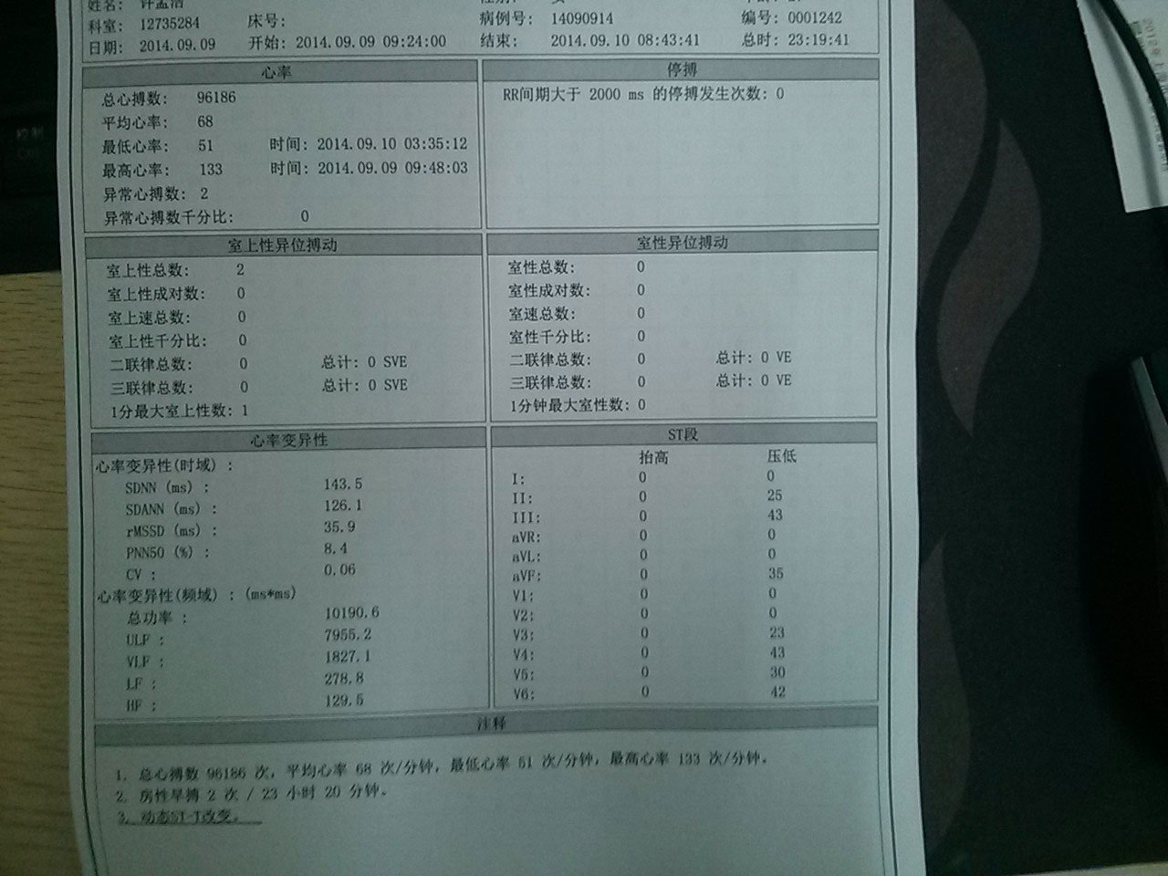 怀孕14周,去建大卡的时候做心电图报告显示ST段异常,医生让做24小时心电检测,麻烦专家看一下报告
