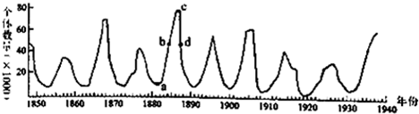A.分析图中曲线变化趋势,该种群数量波动有一定的周期性,大约10年,A错误;B.该种群数量在a点时处于最小值,尚未达到其环境容纳量,B正确;C.该种群数量在a~c阶段受天敌法栋的制约,C错误;D.该种群在b点时种群增长率最大,而在d点时,种群数量迅速下降,次级生典降掏产量小,D错误.故选辨布:B.