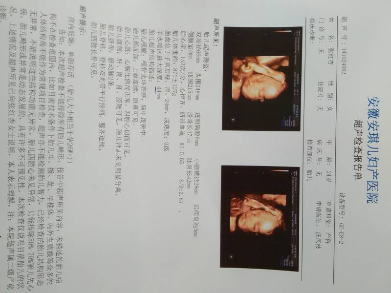 指导意见:你好,根据四维彩超提示 胎儿26周左右,没有脐绕颈,各项指标都很正常,不需要担心。建议孕期要按时产检,做好孕期保健,饮食方面要多喝水,多吃新鲜的蔬菜水果,增加营养,适量运动,忌油腻辛辣的饮食。祝您健康。