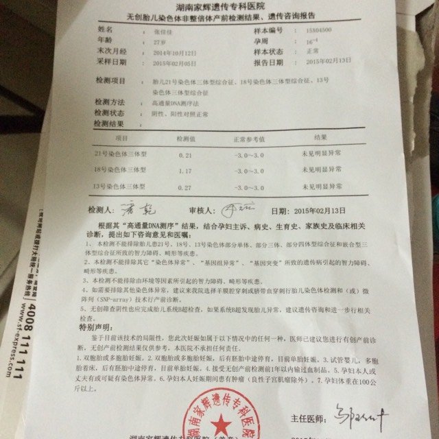 无创DNA 终于下来了 等待的日子真不是人过的 感觉 好漫长 一个多月了 度日如年 各种担心宝宝 无创DNA 终于下来了 等待的日子真不是人过的 感觉 好漫长 一个多月了 度日如年 各种担心宝宝 今天终于石头落地了 医生帮我看看 说是好的但我看不明白 文盲我 点击展开 轩😀 2015-03-06 10:01 为您推荐: 其他回答 看不懂啊 医生是怎么说的 含蓄, 2015-03-06 16:45 宝妈做无创多少钱,检查什么时候能拿到 152*****995_AQdn 2015-03-06 10:27 ,,,呃呃呃 伴 我 安 i 2015-03-06 10:11 正常的!恭喜恭喜! 飞花逐月 2015-03-06 10:07 恭喜宝妈。 155*****568_ETRv 2015-03-06 10:06 加载更多 相关问题 等待无创结果的日子度日如年啊,做无创的宝妈都过了吗 怀孕16周 唐筛结果一项21体是高风险 数值是1/282 今天做了无创dna 漫长的等待开始了 有宝妈有过类似情况吗 怀孕16周 唐筛结果高危 21体数据是1/282 今早做了无创dna漫长的等待开始了 有宝妈是相同情况的吗