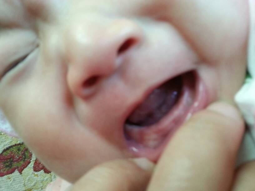 我家宝宝现在4个半月了,好像是长牙了,但是有点担心,一般不是先长门牙的吗?但是我家宝宝是下两边如图