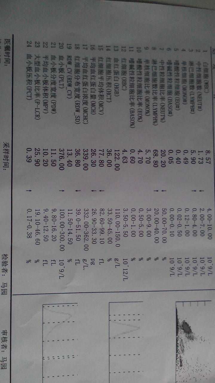 这是我家宝宝的检验报告,男孩,六个月多 不知道有什么问题,希望谁告诉我一下 谢谢 点击展开 匿名用户 2014-07-16 17:13 为您推荐: 其他回答 你好,你现在这个时候还是要自己注意带宝宝去让底层的医生给看一下的,因为这个单子我看得不是很清楚, 可靠的悠闲80 2014-07-16 19:49 相关问题 怀孕六个月找熟人做b超当时b超医师告诉熟人是小y出来后熟人告诉我是男孩难道小y就是指男孩吗 我男孩女孩都喜欢 不知道医生会不会告诉我是女孩还是男孩? 不知道是不是宫外孕,希望懂的可以告诉我下