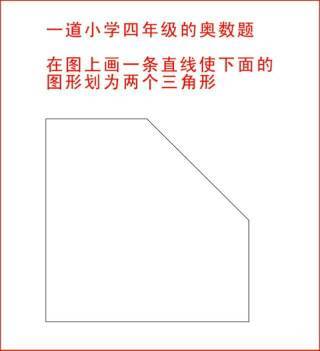 一道小学奥数题,5分钟内做不出来回幼儿园深造去吧! 点击展开 匿名用户 2013-10-29 15:10 推荐回答 这条直线略粗。 这不相锈能算奥数只能算脑筋泳乔急转弯。 从奥数的角度,直线是一维的眠玻眨,只有长,没有宽和高。 母婴用户123662949 2013-10-29 15:15 宝宝知道提示您:回答为网友贡献,仅供参考。 为您推荐: 其他回答 用一条很粗的线盖住那条斜边 匿名用户 2013-10-29 15:14 相关问题 一道四年级奥数题,回答不出来的,回幼儿园深造去吧~ 现在就开始发愁孩子上什么小学,学什么特长,看那个奥数题太难了 我是不是想太多了,怕自己现在就抑郁了 小学奥数题,请知道答案的同志帮帮忙,小孩子书上的题目
