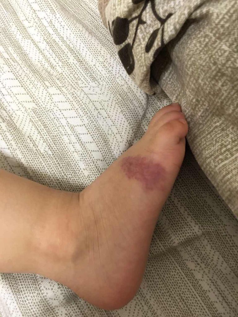 问: 10 5月21日,我发现宝宝脚上有类似蚊子叮咬的红色包包,于是给她擦了蚊虫叮咬的药,今天5