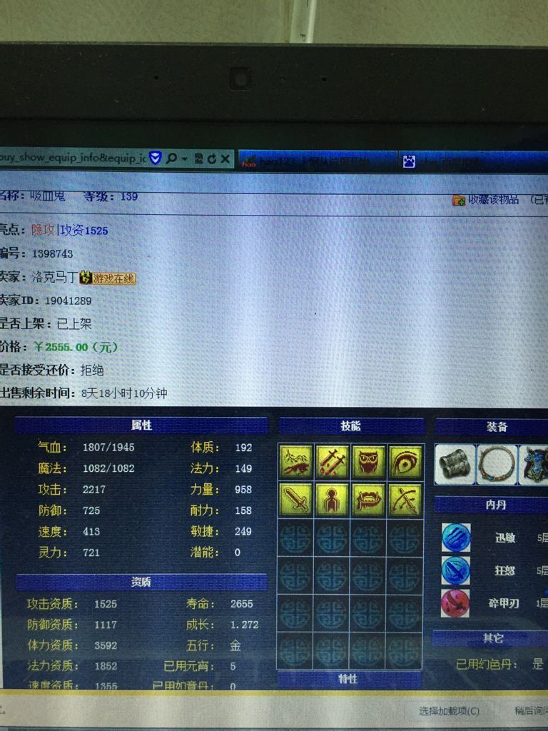 吸间缘血鬼就千万别买。掉价太厉害了。 如果是花魂什么的都还行。 而且这BB配置的技能不是特别好。如果是高搁满迷隐身和高偷套子换一下就可以了。 这样带善恶套就是任务宠,带隐身就是PK宠。搭配不极品,又是鬼子,那就别买搂栋了