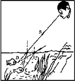 (孩子在湖边观鱼),这条鱼实际在C点处,但孩子看见鱼是在D点处.则小孩这样看的结果是因为光从-到