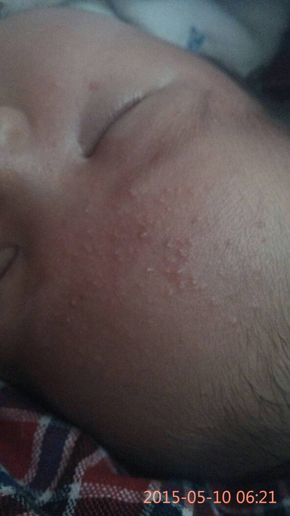 宝宝十八天了,额头上长了好多红疙瘩,顶着白尖儿,请问是湿疹么?还是新生儿痤疮?还是热疹?怎么治疗?