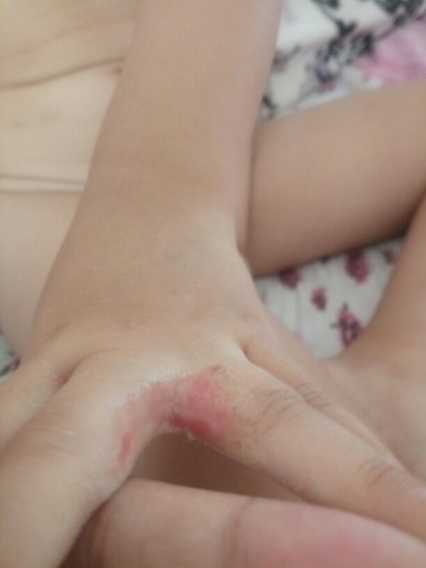 我家孩子得了这个病,不知道是什么病,中指与无名指中缝有局部红色伤,孩子没有受外伤,我不知道这是什么 点击展开 匿名用户 2016-07-24 08:17 满意回答 你好,图片不是太清楚,看起来有些像局脂源纪部的湿疹,用些紫草软膏试试看的碗堡,如果效果还是不理想,就阶潜去医院看一下,化验一下看的。 ̵Now 2016-07-25 22:44 宝宝知道提示您:回答为网友贡献,仅供参考。 相关问题 1、症状:右手中指和无名指指尖疼痛,没有外伤症状,扭动没有… 你好,我小孩三岁脑外伤现在一个多月了,应该复查了,但是我还要做伤残鉴定,所以现在我不知道应该先做那 您好我妈妈外伤手术都半年多了可伤口一直不爱好还出脓每隔一天换一次药伤口是在乳房下是肋骨手术我不知道