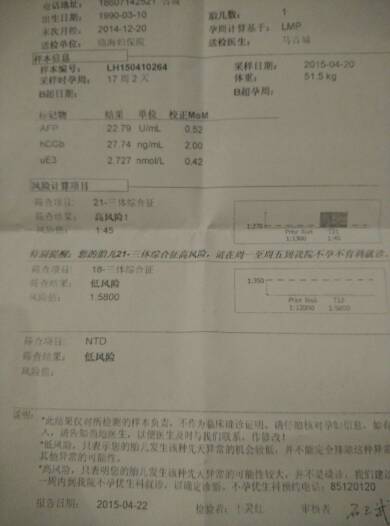 17+2天做的唐筛,21三体综合症,医生还告诉我是“天生愚型”说的吓死人的 结果是1:45高风险