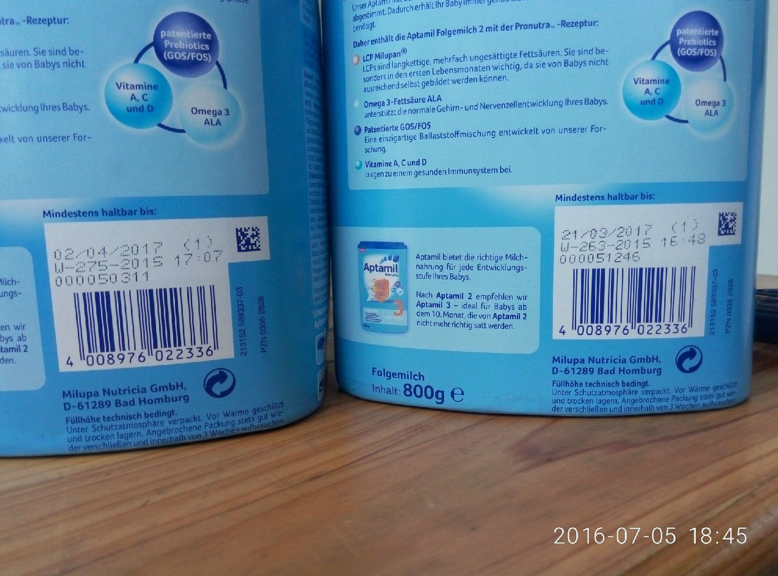 请帮忙看看这个奶粉真假?德国版爱他美 请帮忙看看这个奶粉真假?德国版爱他美,朋友那买的,我发现同一生产线生产的奶粉,生产日期更新的一罐,批号(第三排那个号码,我也不确定是不是批号)却比生产日期旧的小。 点击展开 需要定力 2016-07-05 20:01 推荐回答 第一行露葵捆是保质期第二行是生产日期一个是2015年然唉第275天生产的一个是第263天生产的。可以在gs1上面查一下条码。或者拨打厂家电话发送邮件它局认证 乘银柳 2016-07-08 14:54 宝宝知道提示您:回答为网友贡献,仅供参考。 相关问题 德国版的爱他美婴儿奶粉怎么冲泡 宝宝出生10天母乳不够带着喂德国爱他美奶粉大便有奶瓣碍事么? 宝宝7天,今天突然吐奶了,一直奶粉喂养,德国爱他美,吐的奶黄绿色,给医院打电话后喂了些常乐康,刚刚