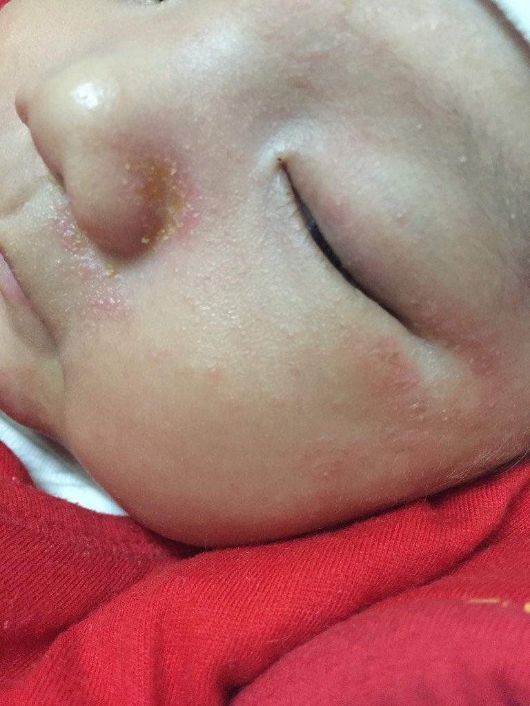 宝宝鼻子也是湿疹吗?都破皮出水了,结痂是怎么回事?有经验的宝妈能支招吗?