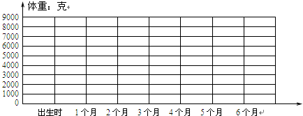 (1)可以用折线统计图来表示这名婴儿的体重情况. (2)作图如下:一名婴辨过儿出生旧做时以及一个月、二个月…六个月的体重情况统计图从图中可以看出五个月到六个月时体重增加最快.故答案为:典以截折线统计图,五个月,六个月.