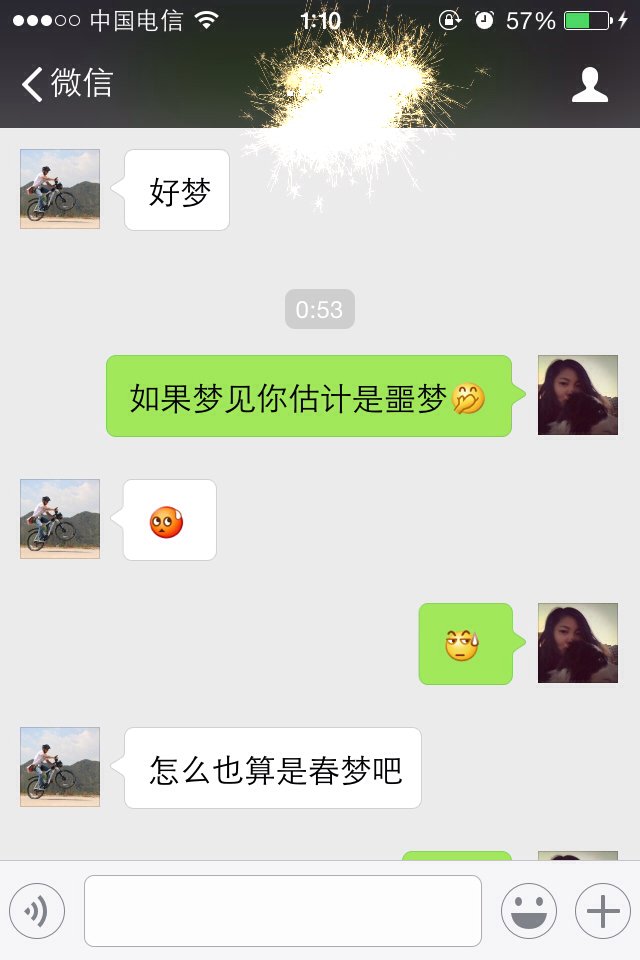和这个男孩是在相亲会认识的,认识一年多了,今天他自己微信上竟然和我说“春梦”这个词,还给我发带有挑