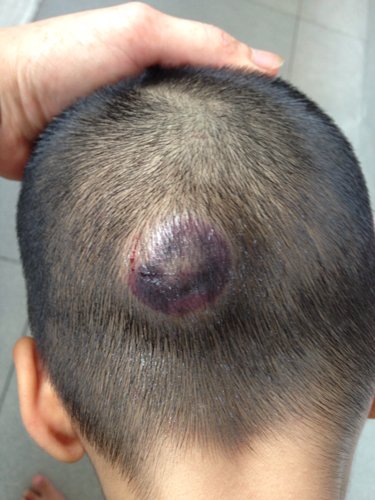 你好,宝宝的情况应该只是软组织挫伤,头皮柴阶血肿可以用殊做毛巾冷敷,能起到镇痛消肿的作用,现在可以暂时观察,注意有没稼饥沃有出现哭闹不止,呕吐,精神差等情况,有的话及时就诊。