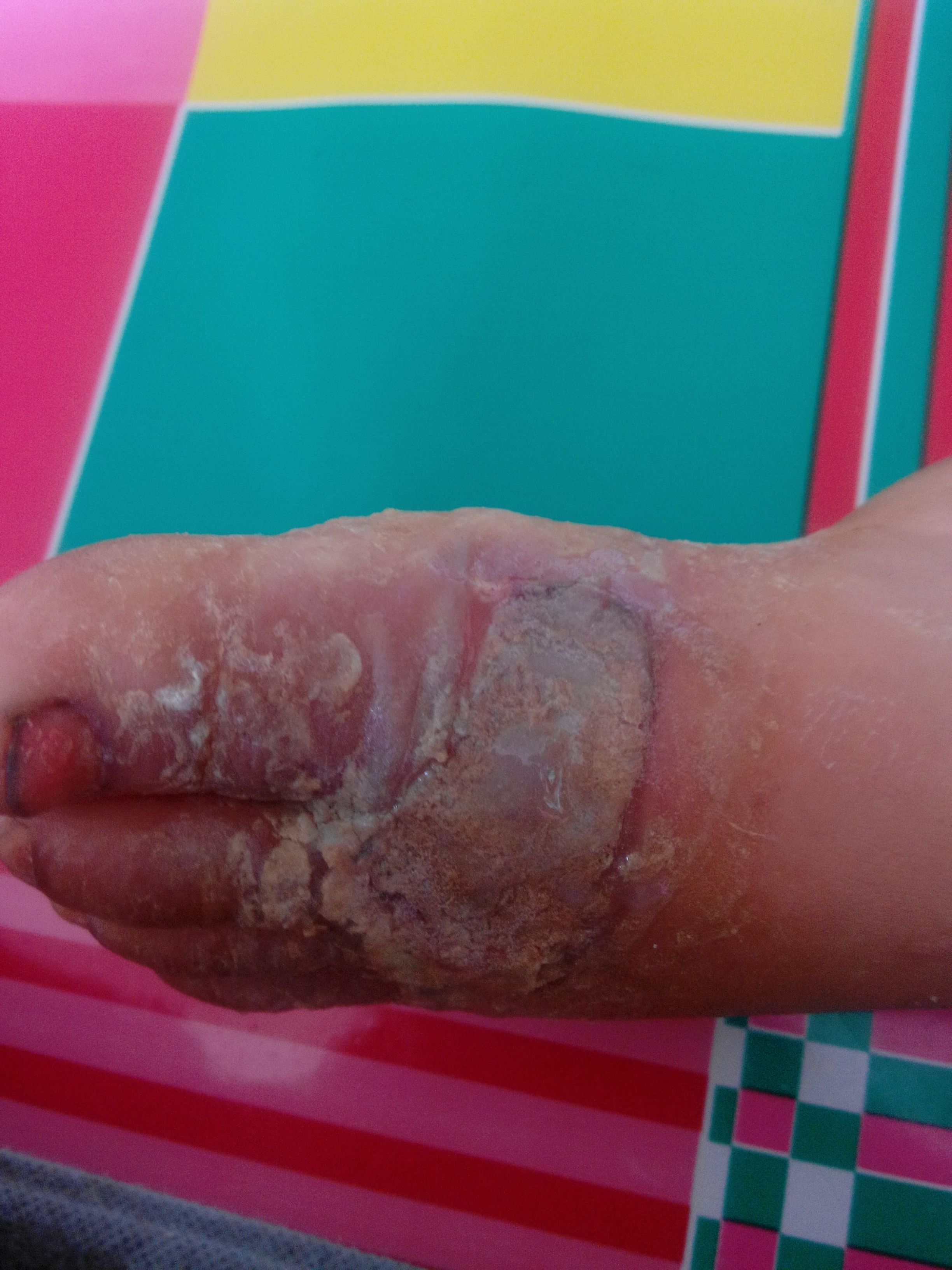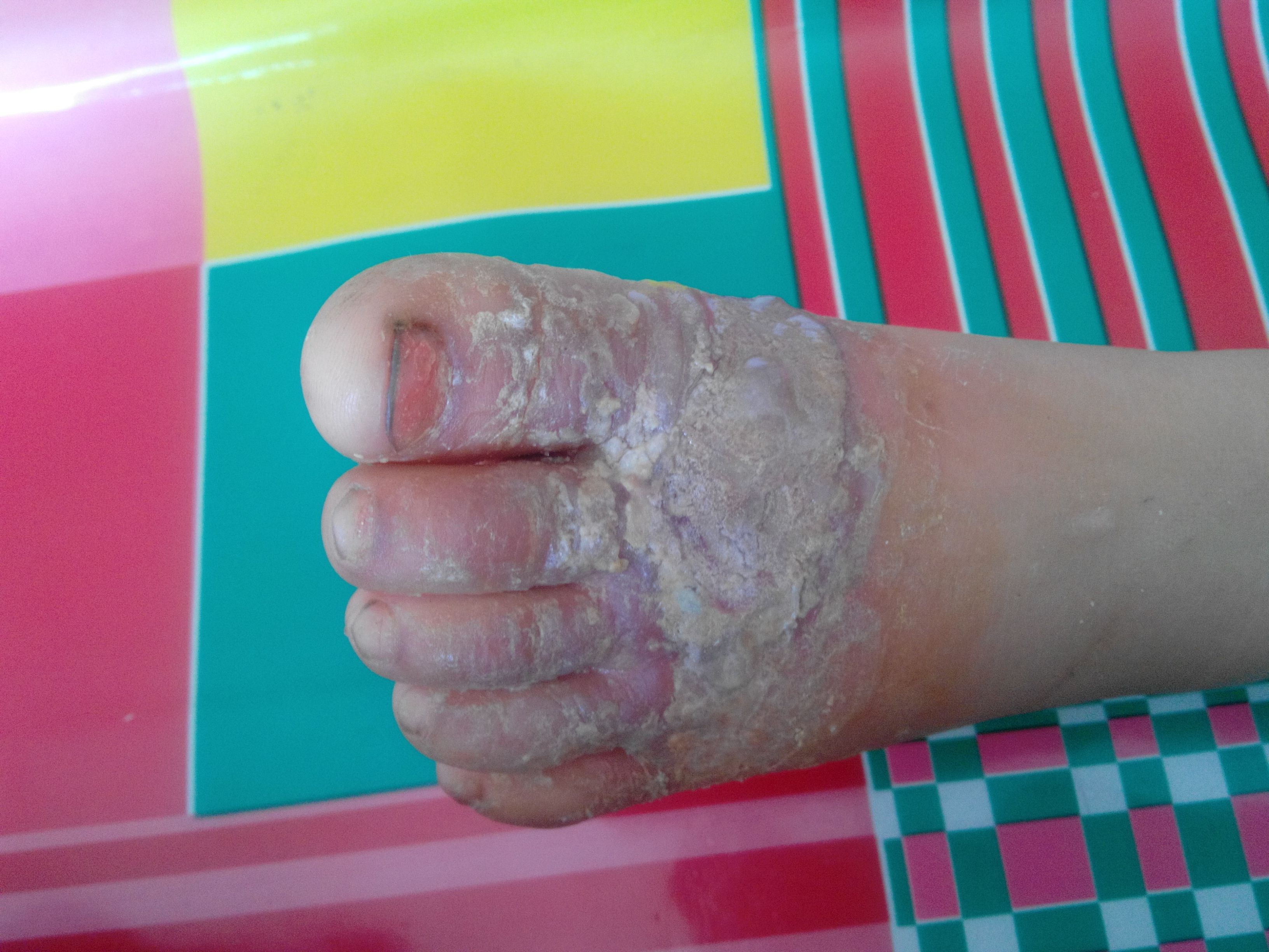 小孩三岁了,稀饭烫伤?起皮处大约两指宽 烫伤后就直接去的医院,医生给洗完后,涂上药就让回 家了,配了两种药,一种是6S益美肤,还有斯丽凯纳米银抗菌凝胶。让一天擦三回,说三四天后就干了,没事了,我们就回家了,可是三四天后干是干了,医生又让我们去说是给看看好的怎么样,去了以后就又把刚刚长好的干皮皮撕掉了,出了好多血,又给擦上药让回家了,说是两天换一回药,还给包扎了呢,不知是不是更严重了呢?还有换药的时候纱布和伤口粘连该怎么处理才不会疼呢? 请问医生这到底是快好了,还是更严重了呢?求求您帮帮我的孩子吧? 点击展开 匿名用户 2014-06-02 12:03 为您推荐: 其他回答 你好,根据描述的情况分析属于烫伤的症状,及时的休息保养吧,芦荟胶试试。 高进free 2014-06-02 13:14 相关问题 小孩子被稀饭烫伤破皮如何避免感染 宝宝十一个月,12号烫伤深二度,破皮,医生让自己决定是否植皮,看了别人植皮挺痛苦的,我也不知道怎么 小孩烫伤了什么时候长皮