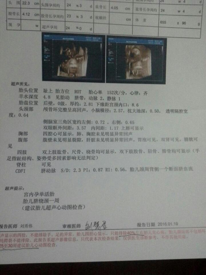 今天去做四维,做b超那个人说心脏看不清楚,让去儿童医院做胎儿超声心动图检查,拿了单子出来我去找门诊 今天去做四维,做b超那个人说心脏看不清楚,让去儿童医院做胎儿超声心动图检查,拿了单子出来我去找门诊大夫大夫又说没问题,到底用不用去查呀? 点击展开 双子座悦悦921 2016-01-20 19:01 为您推荐: 其他回答 不一定呀,既然有胎心跳动,完全不需要担心 cn#BaLapGfkLa 2016-01-21 15:02 你要是不放心可以再去查查看 幸福最晴天_zuBa 2016-01-20 19:58 不清楚。。。 为子妈 2016-01-20 19:58 不知道。。 大王叫我来巡山⋯ 2016-01-20 19:57 听医生的吧 心语宝 2016-01-20 19:57 加载更多 相关问题 四维检查单脐动脉,自己哭了好几次,四维医生说没事,心脏也挺好的,但是有人建议做胎儿超声心动图,但是 怀孕26周,做B超查出胎儿先天性心脏病 孕24周做的b超是畸形筛查吗?可以筛查胎儿先天性心脏畸形吗?还是得做心超才能筛查胎儿先天性心脏畸形?