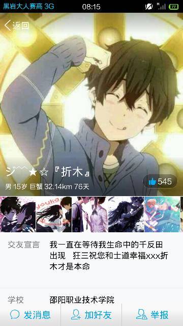 请问这个人的QQ个性名片怎么弄?版式好奇特 他不是svip 点背景是头像而不是“设置为我的名片” 点击展开 匿名用户 2015-04-14 08:33 满意回答 这是因为还电怠没有添加他为qq好友,所以看到陌生人资料和看惠厉做到的qq好友的资料,不相同。从谁赞过我的非好友列表里,看到的资料版式都是一样的。欺患 匿名用户 2015-04-14 08:39 宝宝知道提示您:回答为网友贡献,仅供参考。 为您推荐: 其他回答 是不是新版qq hg夏有乔木 2015-04-14 08:38 你点开自己的名片 匿名用户 2015-04-14 08:35 。 匿名用户 2015-04-14 08:33 相关问题 女孩在手机QQ上设置了寻觅爱情这张个性名片 我QQ里有一位好友,我知道他是小孩,还把名片改成18岁,对我发消息说“我还要打工,上班 没时间聊” 当女孩子用qq名片光棍们燃烧吧是什么意思