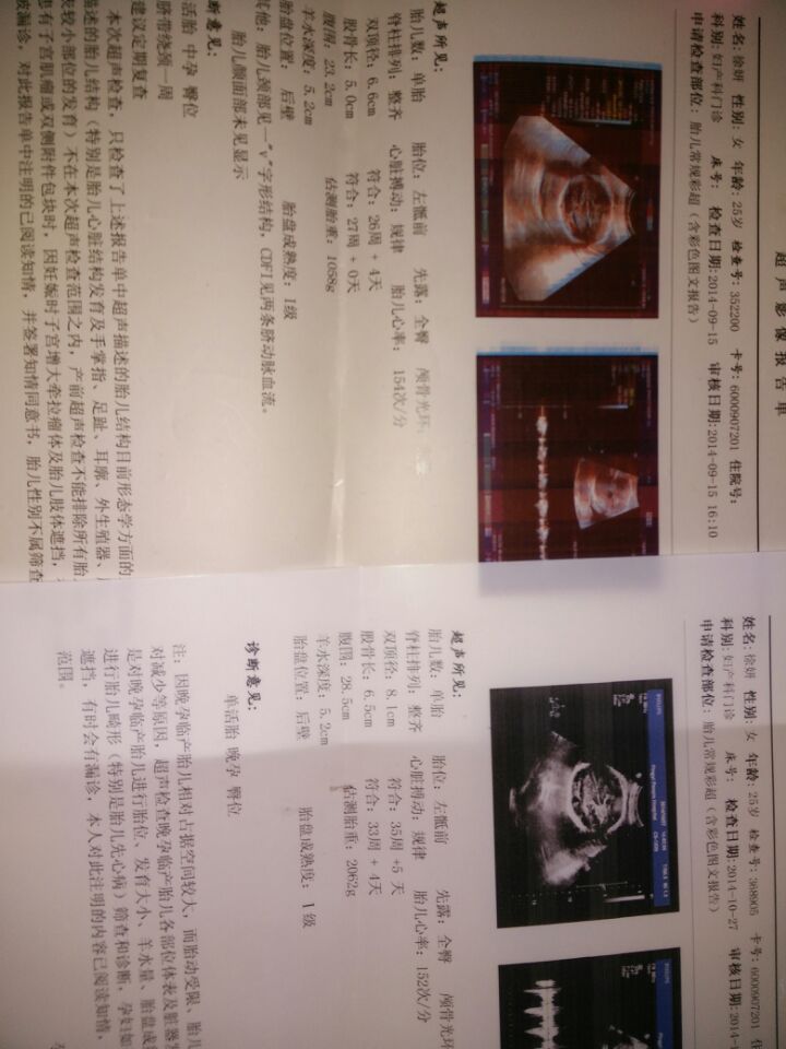 帮助,我老婆怀孕8个半月,谁能通过两张单子判断出是Boy还是girl? 点击展开 匿名用户 2014-10-27 17:33 为您推荐: 其他回答 你好:胎儿性别从彩超报告单上的结果是看不出来的。一般来讲非医学必要是不允许是鉴定胎儿的性别的,是违反法律和医院的规定的。虽然用彩超可以大致的观察出来男女,但是彩超报告单上的照片是不会拍到能辨别男女的图片的。 19342988 2014-10-28 21:01 相关问题 我老婆怀孕7个半月了,从B超单子能看出男女吗?? 在这里请教各位医者或者妈妈们了?我老婆怀孕有9至10周了 为什么肚子看起来就很大 像那些怀孕4个月 我老婆怀孕6周了,每天早上小便时有褐色的东西正常吗?