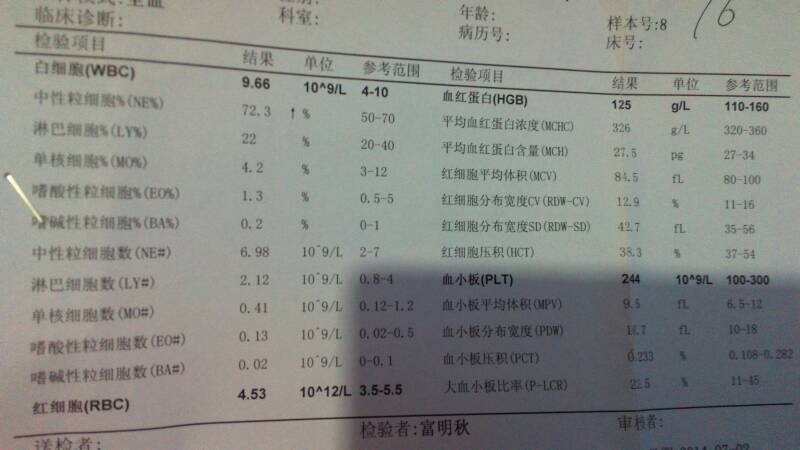 孕检是的尿检单子 是不是有问题不正常啊? 孕检是的尿检单子 是不是有问题不正常啊? 点击展开 丹050801 2016-02-02 17:36 为您推荐: 其他回答 你好,首先,这个不是尿检的单子,这是血常规检查,检查报告没有什么问题的,各项指标基本上都是正常的。 羲兰仙子 2016-02-02 17:43 相关问题 尿检单子这样正常吗 宝宝特别能喝水,去医院血检,尿检,血糖检查都正常,想知道是不是缺什么微元素导致的 孕24周,尿检,上皮细胞高达正常值上限两倍:118,其余正常 尿检当天有安排糖耐量检查,所以大概有