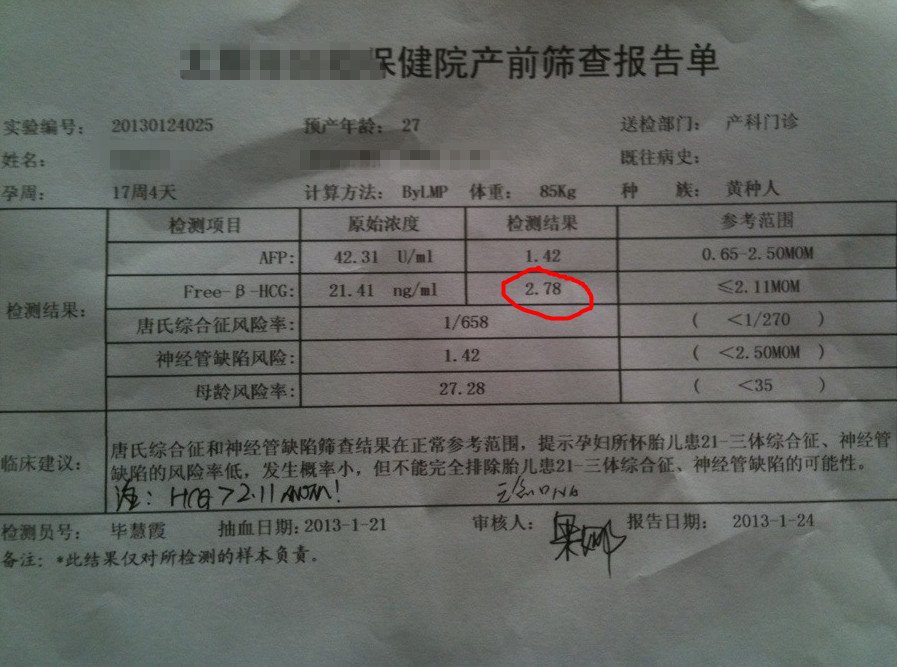 游离β-HCG的MOM值是一个比值,是孕妇体内β-HCG检测值除以同等用立斯孕周时正常孕妇β-HCG的检测值的中位数,得到的比值。这项比值受影响的因素也有一些,常见的是由于怀孕的时间计算不准引起,体重过大也会对结果产生影响,我注意到孕妇有85kg。还有是否双胎呢?上面也没有说明,双胎也会有影响的。单独此项指标的波动,意义不大,况且这家哑逝医院β-HCG的MOM值是否设置合理值航栋得斟酌,常规的设置是2.5。如果是这个MOM值,那你的检测值就不算太高了。当然每家医院的MOM值都能不尽相同,这和每家的实验室条件、检测方法等相关。你这样的情况实在没必要让自己陷入恐慌。我建议再换家医院筛查一次,重新仔细、详实的填写你孕周的情况。若再次检测异常,那需要考虑进一步的确诊了。