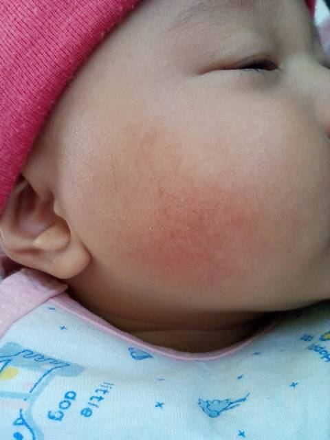 宝贝最近脸皴了,不知道风大还是过敏了,之前用过一段时间的化妆品,脸突然这样了