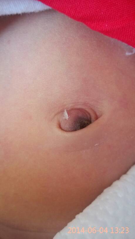 新生儿8天肚脐这样正常吗?我每天都用酒精消毒!今天洗完澡把肚脐贴撕下来,看见肚脐贴上有点黄色东西!