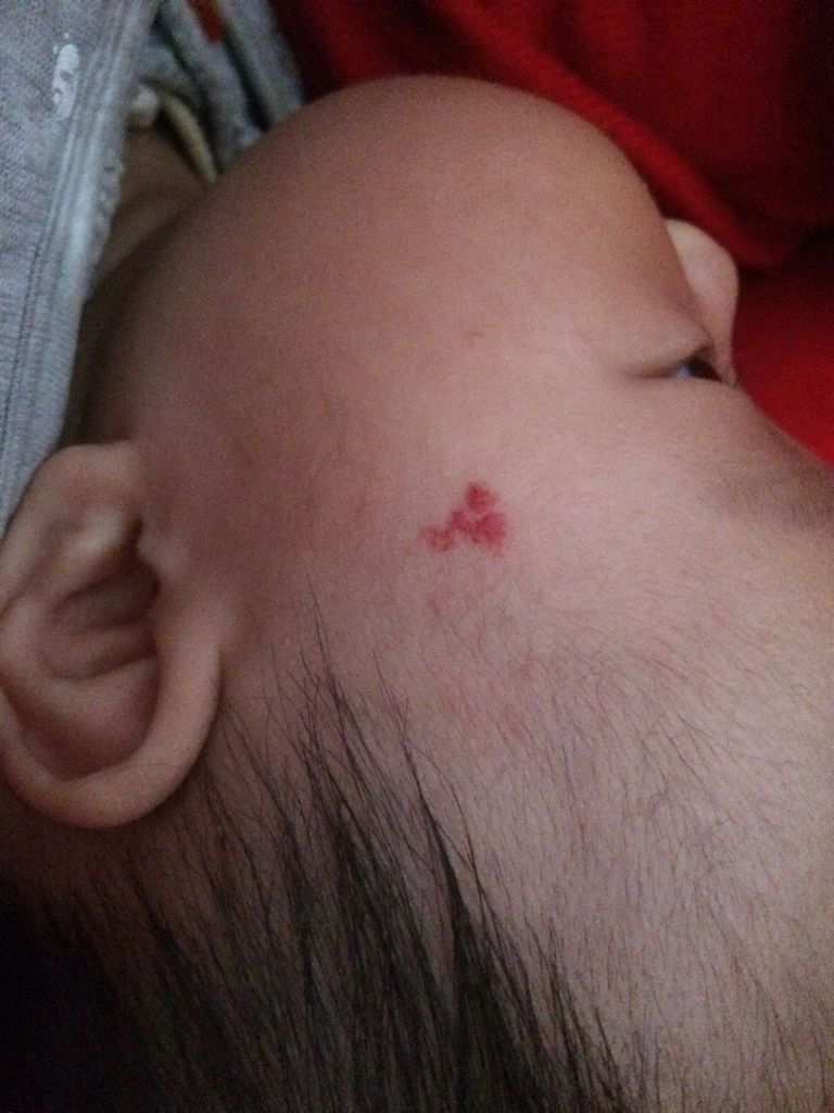 两个月的宝宝太阳穴位置出现一块血红的印记这是什么啊?出生的时候没有 这么久了都没有一点消下去的意