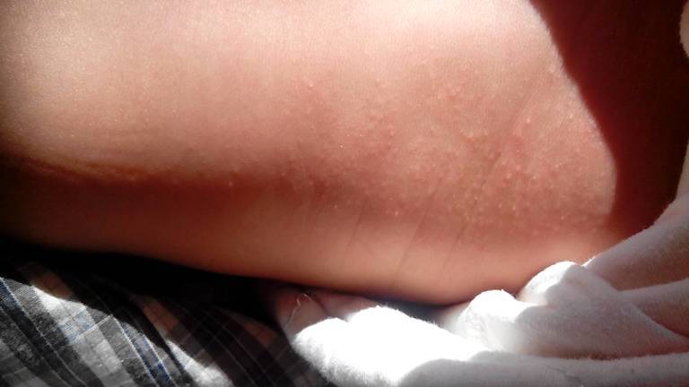 医生帮忙看看孩子身上这是什么疙瘩 医生帮忙看看孩子身上这是什么疙瘩 点击展开 一米陽光 2014-11-13 11:24 为您推荐: 其他回答 可能是风疹 风疹病毒在体外生活力很弱,传染性与麻疹一样强。加强护理,室内空气保持新鲜,加强营养.隔离至出疹后5天.4.防止播搔破皮肤,引起感染。是儿童常见的一种呼吸道传染病。积极治疗为好, fyznh军 2014-11-14 08:22 是捂得疙瘩,还是湿疹,去医院看看吧 紫蜻蜓 2014-11-13 11:30 相关问题 请哪位医生帮忙看看孩子的化验单! 各位宝妈,医生帮忙看看孩子有多大,我看不懂谢谢