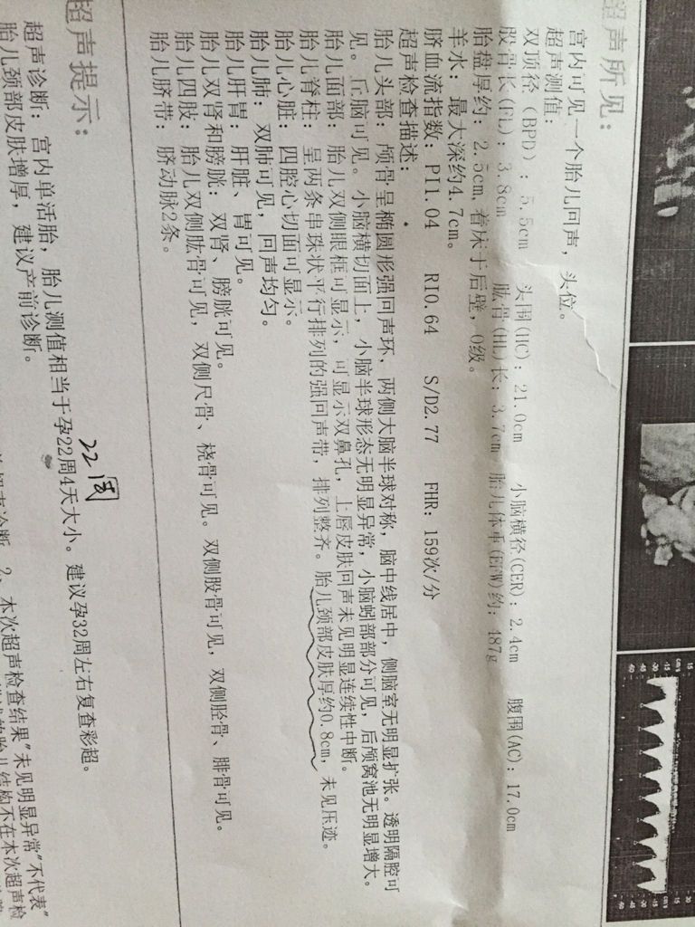 今天宝宝22周加2天,四维检查宝宝颈部皮肤厚度是0.8cm请问严重吗?须做羊水穿刺吗?nt,和唐筛 今天宝宝22周加2天,四维检查宝宝颈部皮肤厚度是0.8cm请问严重吗?须做羊水穿刺吗?nt,和唐筛都通过了的! 点击展开 139*****680_WS6e 2015-09-01 11:36 满意回答 不满典需要……信我的……现在医院是把自己责任全推干玻搂最净……我看了你的报告没问毫耻题……发育很好……望采纳 匿名用户 2015-09-01 11:41 宝宝知道提示您:回答为网友贡献,仅供参考。 相关问题 怀孕24+5周胎儿颈部皮肤皱褶增厚约1 09CM,唐氏筛查是低风险,请问有必要做羊水穿刺吗?谢谢 如下图为什么有的医生说正常,有的医生说宝宝颈部见u形皮肤压痕,羊水偏少怕患上综合症建议剖腹,但我想 双顶径9 5,头围32 5,腹围37 3,股骨长7 0,颈部皮肤压痕呈u形,羊水指数18 5,大概小孩有几斤?脐带绕颈吗