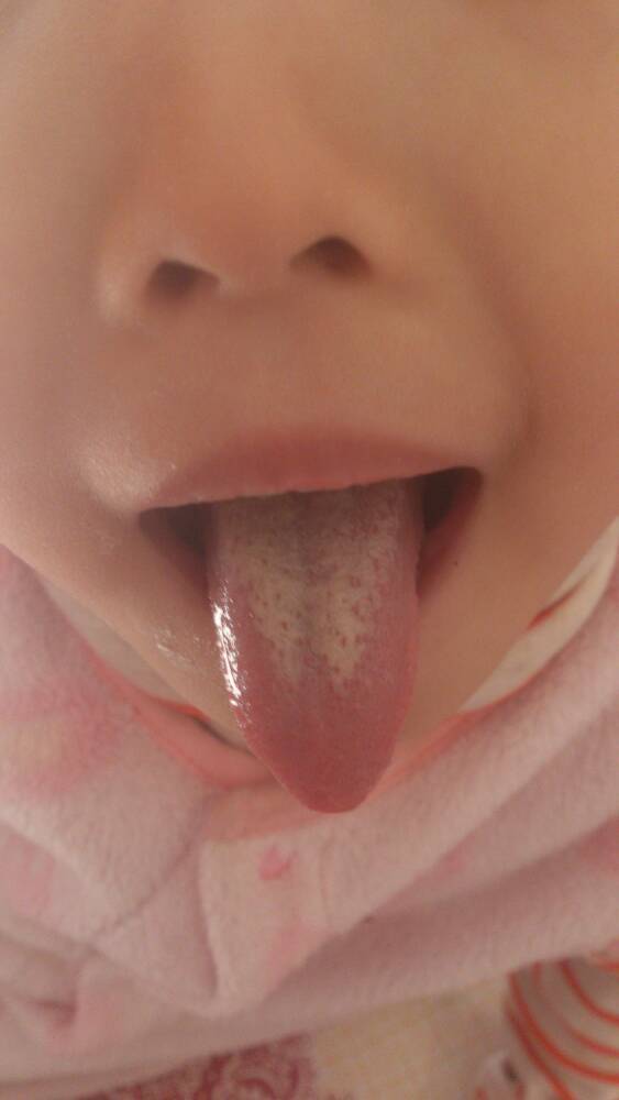 三岁十个月女宝宝,瘦弱。上周感冒,咳嗽,去医院化验白血球偏高,诊断上呼吸道感染。吃了六天头孢和小儿豉翘清热颗粒。现在感冒症状没有了,就还咳嗽。基本每天早上起来会咳一阵,晚上不咳,白天跑跳一会儿会咳嗽。干咳没有痰。今早感觉比之前咳嗽得厉害一些。舌苔很厚。因为孩子很讨厌吃那个豉翘清热颗粒,想问问有什么推拿的手法可以治?发孩子舌苔情况照片一张,请根据描述和照片判断属于什么类型的咳嗽,再根据类型介绍下推拿的手法,不要长篇复制粘贴过来。谢谢。