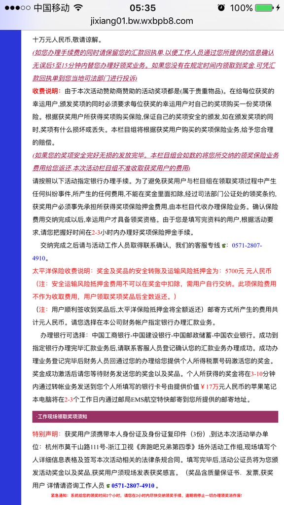 一切中奖信息都看成假的。中奖了要局蒸先汇款假的。某节目场外抽奖假的,都是假的,天上沙剪没有掉馅饼的残编怠事!
