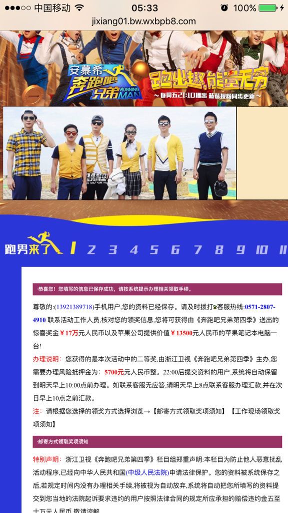 浙江卫视奔跑吧兄弟,抽奖活动真假?意思是说要打5700押金当什么运输保险费,吓死宝宝了,宝宝没钱