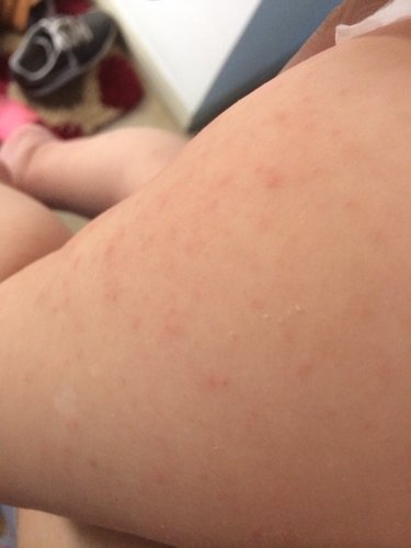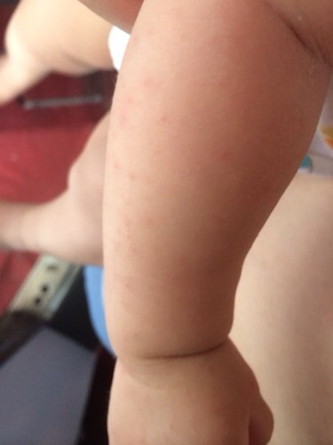 像湿疹,或痱子,可以用十滴化泳水,富降射滴在每天法絮的洗澡水里,两三天就有效果。