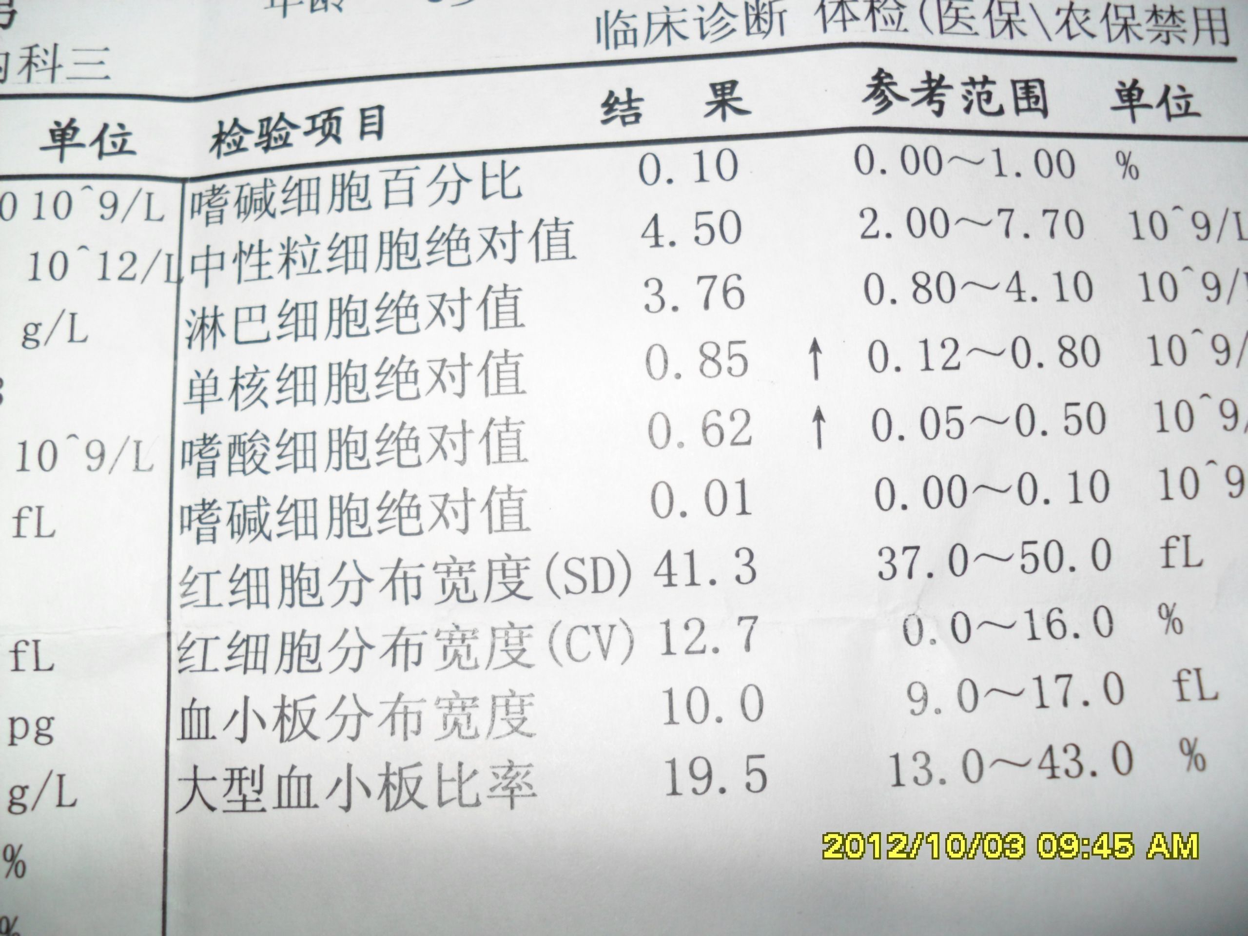 患者信息:男 6岁 浙江 温州 病情描述(发病时间、主要症状等):他手背上以前被蚊子叮了一个红点 到现在还没好 我很担心 去做了血常规 结果 单核细胞百分比 ,嗜酸细胞百分比,嗜酸细胞绝对值 单核细胞绝对值 都偏高 请问 该怎样办想得到怎样的帮助:请医生 分析曾经治疗情况及是否有过敏、遗传病史:他父亲在他出生半年后 得结肠癌 治愈他手背上以前被蚊子叮了一个红点 到现在还没好 我很担心 去做了血常规 结果 单核细胞百分比 ,嗜酸细胞百分比,嗜酸细胞绝对值 单核细胞绝对值 都偏高 请问 该怎样办