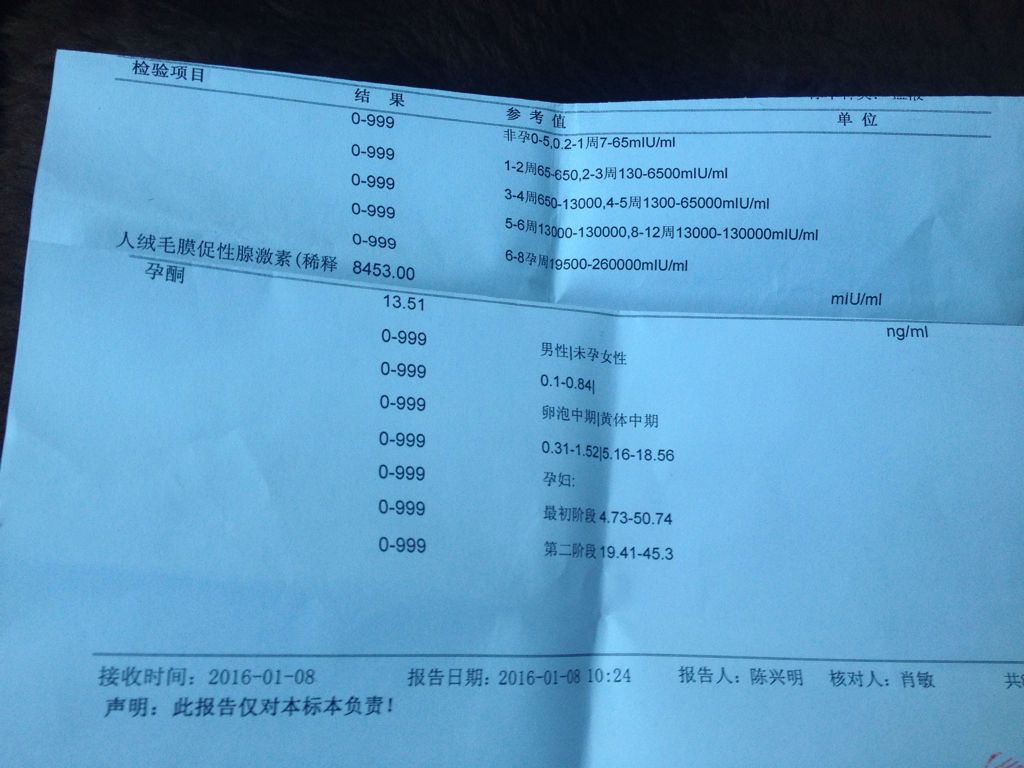 哪位专家能帮我看看这几张化验单,2015年12月31日第一次去医院做HCG和孕酮检查,HCG结果是