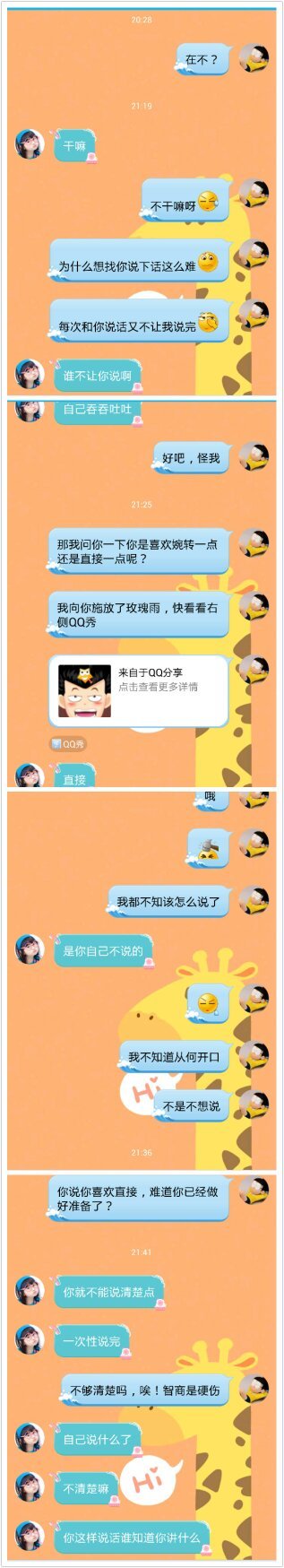 呃,我想说这个女生应该不喜欢你,原因很简单,就是我的自觉。好吧!开玩笑的,你告白就告白干嘛吞吞吐吐的,还有,现在不流行在网上告白啦,建议你在一个适合的晚上,陪她去逛夜市,然后到一个安静的地方,和她面对面,认真的和她说,你喜欢他,她要是不拒绝就亲下去,OK啦!写了那么多看懂了吗?