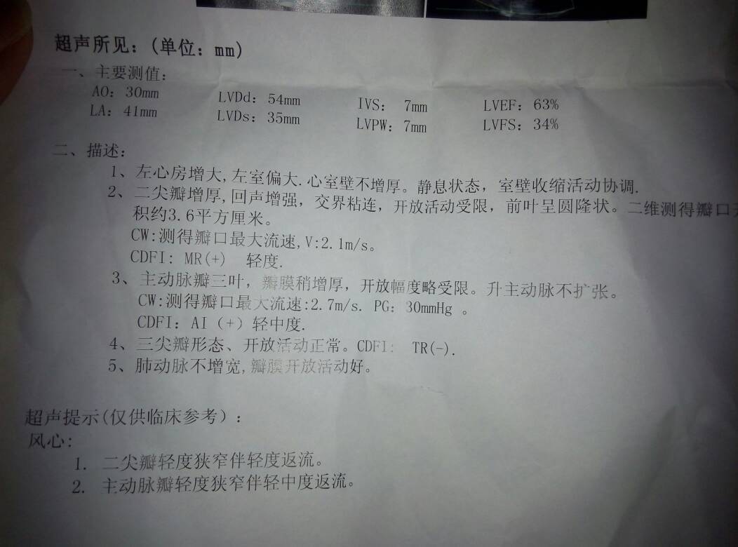各位专家帮我看看:这张风心病的彩超!现在怀孕3个月了!生小孩到底有多大的风险? 点击展开 匿名用户 2015-05-19 19:57 为您推荐: 其他回答 请问你有心慌胸闷? cxhlbxgo 2015-05-19 20:01 相关问题 请教专家,帮我看看这胎能不能保住,谢谢!怀孕50天了,彩超如下 我有2个女宝!现在又怀孕4个月了!今天去做彩超!医生说胎儿坐着!做了一阵子!又说是和我对脸趴着!最 我现在怀孕五个月了!请问以后还需要做哪些检查,做几次?四维彩超有必要做么?