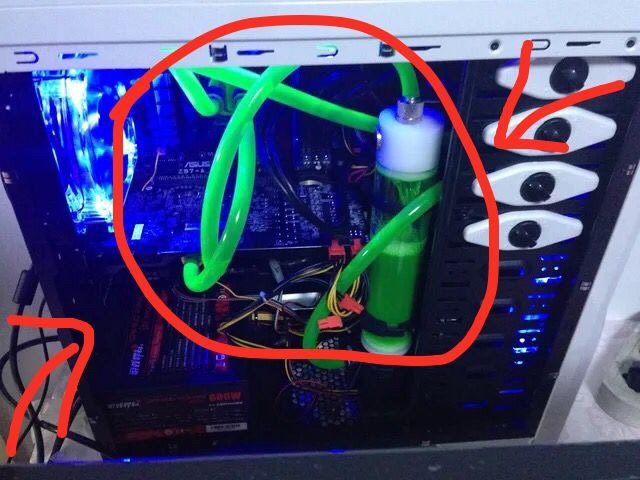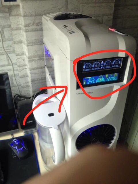 水冷散热系统,液体颜色可以随意换的,机箱为温控显示屏