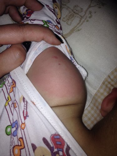 宝宝一岁7个月15日打预防针 当天没敢洗澡 16人晚上洗澡发现打针的地方 又红又肿,还特别硬!宝宝
