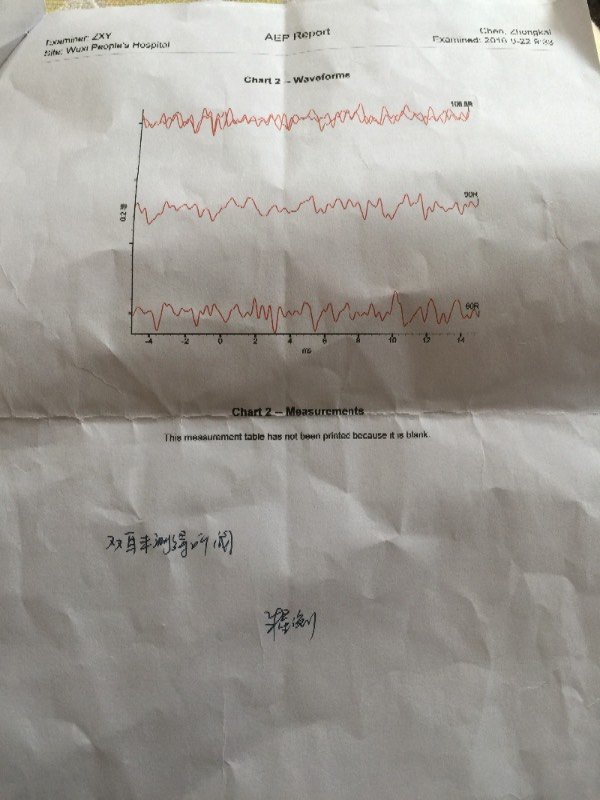 6个月宝宝做脑干诱发电位图,我看不懂医生说宝宝听不到了 点击展开 匿名用户 2016-09-23 12:26 满意回答 孩子应该做的检查有这些,所有结果结合看才能看出孩子听力 实饮月_BuaI 2016-09-23 16:02 宝宝知道提示您:回答为网友贡献,仅供参考。 为您推荐: 其他回答 就是给声音刺激后脑干没有电反应,就是没有测出有听觉 匿名用户 2016-09-23 12:34 相关问题 宝宝三个多月脑干诱发电位 快速脑干诱发电位检测,孩子左耳有问题? 出生5天做听力测试未通过,今儿做脑干诱发电位还是没…