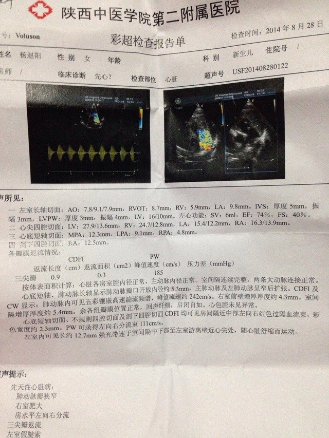 指导意见:你好,宝宝的情况比较严重的,先天性心脏病,还有三尖瓣反流的情况,建议听医生建议配合治疗