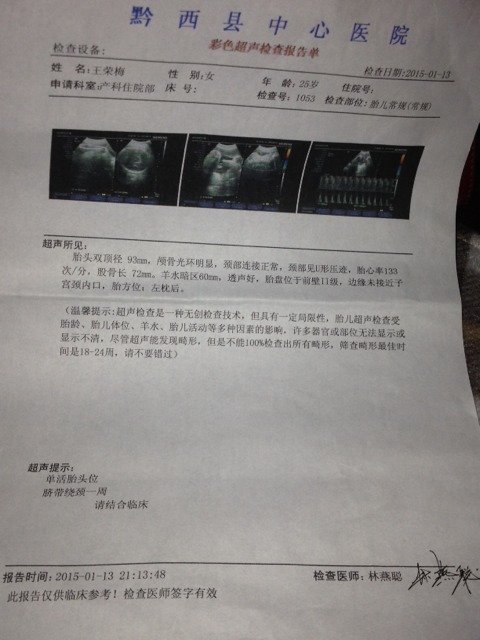 求医生帮忙 这是我昨天的B超单 麻烦你们帮我看下 求医生帮忙。这是我昨天的B超单。麻烦你们帮我看下 点击展开 幸福ing_83cI 2015-01-14 18:28 为您推荐: 其他回答 您好!根据这个检查结果,,您的宝宝发育正常,没有发现明显异常情况。脐带绕颈一周。 cn#BBpLfaVBau 2015-01-15 05:41 注意胎盘成熟度…… 悦宝爸 2015-01-14 19:15 正常啊!好像是男孩 愿得一人心❤白首不相离 2015-01-14 18:40 相关问题 医生宝妈们?帮我看下这b超单胎位正不? 麻烦哪位医生能根据我宝宝的b超数据估一下现在孩子的体重 谢谢!