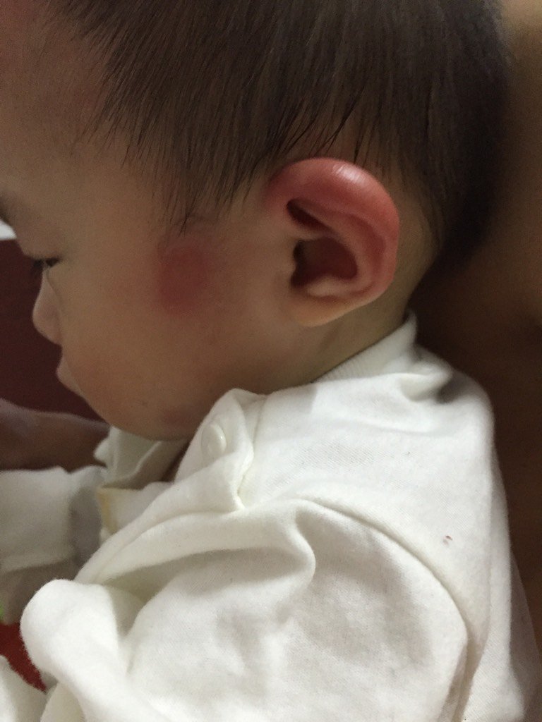宝宝早上一觉醒来脸 耳朵额头都有小包 我以为是虫子咬的没怎么在意就涂了一点药膏 晚上十点半睡醒包变