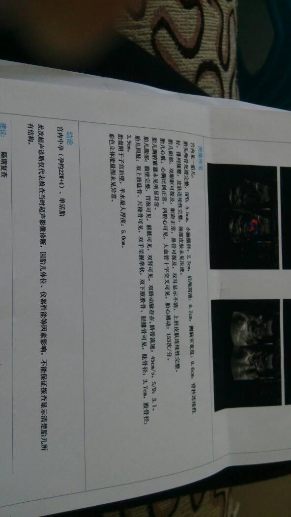 从提供的b超单看,彩超检查胎儿的发育符合孕22周+的表现。胎心率在正常范围内,胎盘附着位置正常,羊水量在正常范围内;超声描述的各系统暂无明显的结构性畸形。建议暂时观察,定期产检。