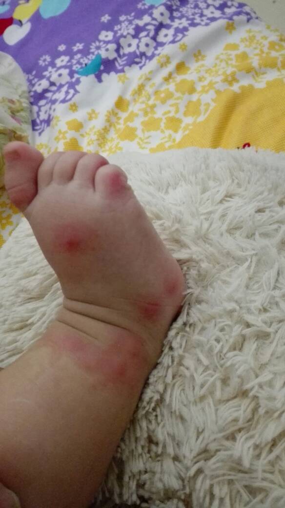 你是哪里人啊?看着好心疼,有点像我家宝贝夏天被蚊子或者小虫子叮过的感觉,是不是小蚂蚁或者别的昆虫把宝宝给叮了呢?感觉像